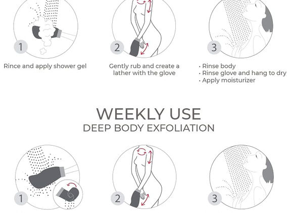 Peut être utilisé quotidiennement pour une exfoliation douce avec du gel douche ou une fois par semaine pour obtenir une véritable exfoliation profonde du corps. Observez facilement le pelage et le roulement de la peau et obtenez une peau soyeuse, éclatante et oxygénée dès la première utilisation