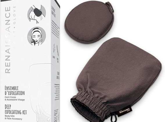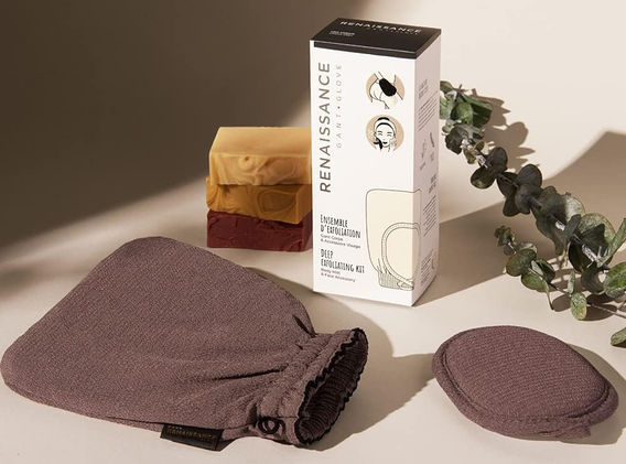 Le kit officiel de gants exfoliants en profondeur Renaissance avec gant pour le corps et accessoire exfoliant pour le bain par Daniele Henkel – Vegan, naturel, qualité premium – pour tous les types de Peau.